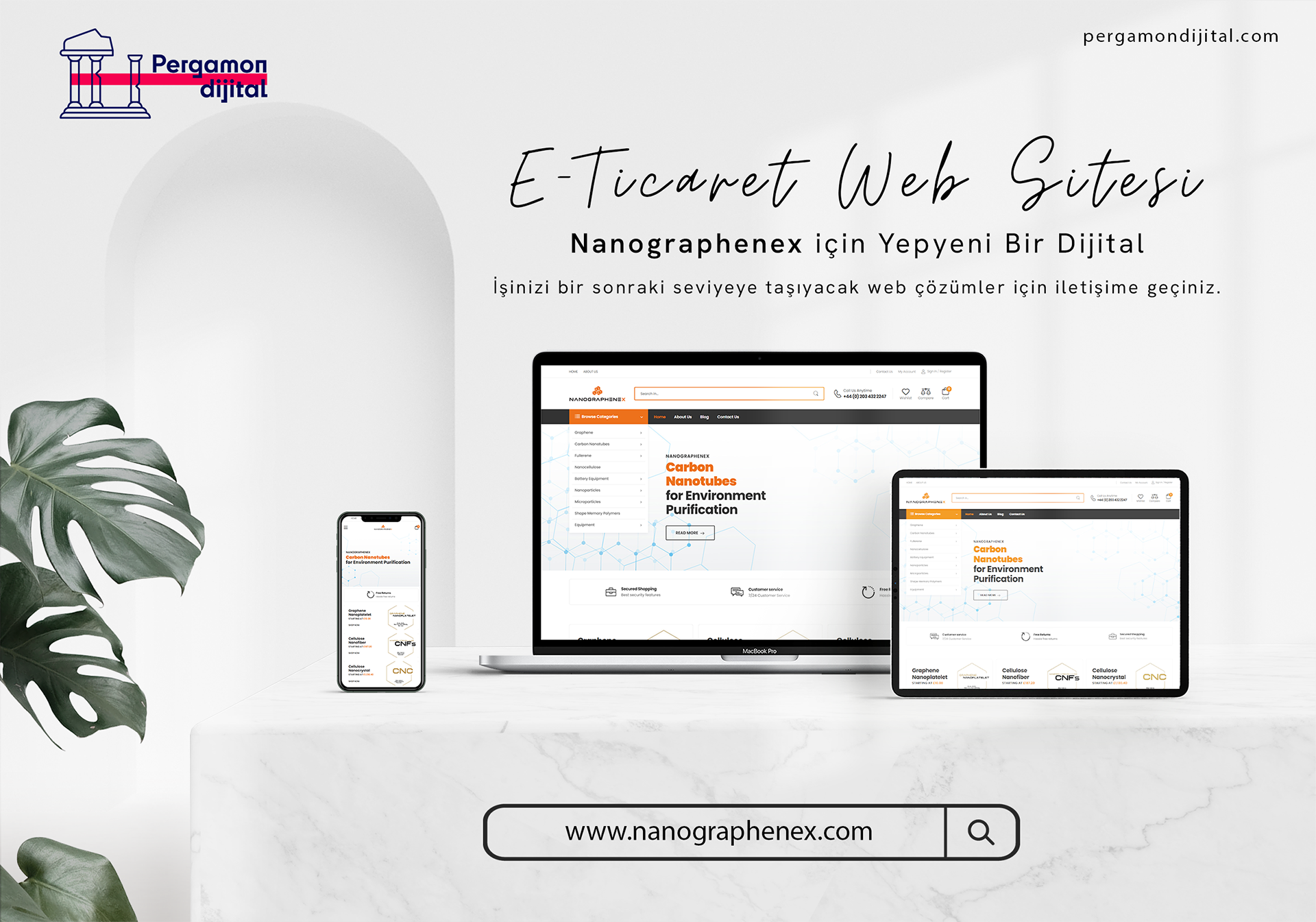 Nanographenex için hazırladığımız bu e-ticaret projesi, sadece ürün satışına değil aynı zamanda firmanın yüksek teknoloji vizyonunu dijitalde güçlü bir şekilde temsil etmeye odaklandı. Pergamon Dijital olarak bilim ve teknolojiyi buluşturan bu projede yer almaktan memnuniyet duyuyoruz.